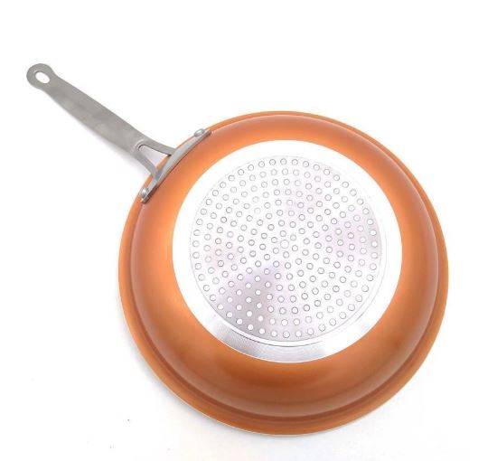 Faites sauter, frire et cuisiner en toute tranquillité. la poêle à frire en céramique est exempte de produits chimiques toxiques généralement utilisés sur les produits revêtus de téflon anti-adhésif.