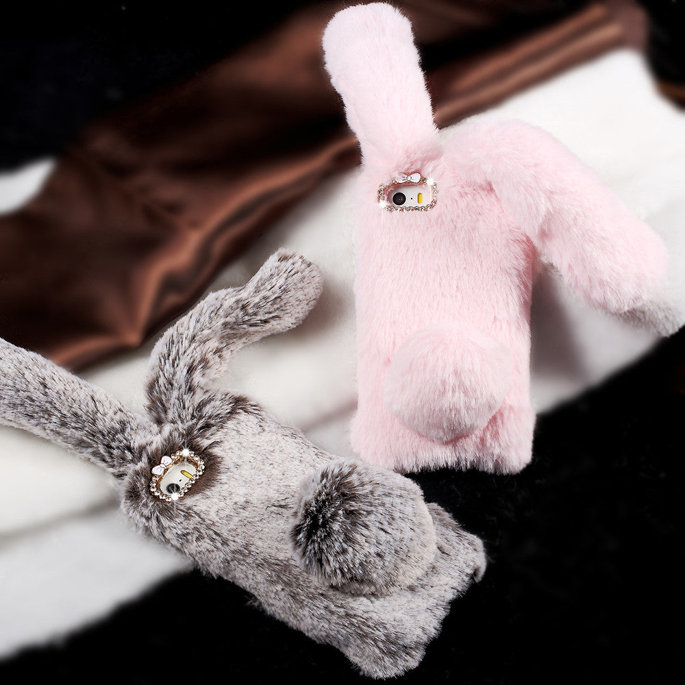 - Doux Peluche Laine Chaud Fourrure de Lapin Téléphone Anti-Rayures