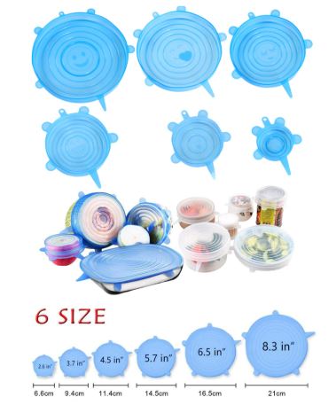 Notre paquet de 6 couvercles multi-tailles de couvercles est idéal pour sceller n'importe quel contenant, aliment ou tasse. Les tailles incluent 2.6 ", 3.7", 4.3 ", 5.5", 6.3 "et 8.1"