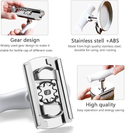 Cet ouvre bocal manuel s'adapte à toutes les tailles. Fabriqué en acier inoxydable. Le diamètre doit être compris entre 2 cm et 10 cm.
